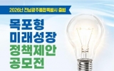 목포 GJ저널망치2026. 04.27[GJ저널 망치] 목포시가 전남·광주 통합특별시 출범에 대비하고 지역의 미래 성장동력을 발굴하기 위해 ‘목포형 미래성장 정책제안 공모전’을 개최한다. 이번 공모전은 시민과 국민의 창의적인 정책 아이디어를 시정에 반영하고, 변화하는 행정환경 속에서 목포의 경쟁력을 높일 수 있는 실효성 있는 정책을 발굴하기 위해 마련됐다. 공모 분야는 ▲지역경제·일자리(지역산업 육성 및 일자리 창출) ▲청년·인구(청년 유입·정착 지원 및 인구감소 대응) ▲관광·문화(관광 활성화 및 문화콘텐츠 개발) ▲도시재생(원도심 활성화 및 도시재생 추진...