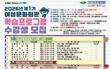 여수 GJ저널망치2026. 02.19[GJ저널 망치] 여수시 여성문화회관에서 진행하는 ‘제1기 여성문화회관 학습프로그램’ 수강생을 오늘(19일)부터 25일까지 5일간 수강인원 전원을 선착순으로 모집한다. 모집 과목은 ▲양재, 제과제빵, 홈패션 등 기능반 8개 ▲한지공예, 오카리나, 캘리그라피 등 취미반 17개 ▲의류수선, 생활요리, 플루트 등 야간반 12개 등 37개 과목이다. 이 중 밸리댄스, 소도구 필라테스, 여성합창, 체형교정발레 4개 과목은 여성 전용 수강 과목이다. 모집인원은 573명으로 교육 기간은 3월 2일부터 5월 29일까지다. 여수시에 거주...
