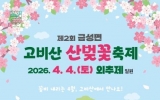[GJ저널 망치] 담양군은 오는 4월 4일 금성면 외추제 일원에서 ‘제2회 금성면 고비산 산벚꽃축제’를 개최한다. 금성면 고비산 산벚꽃축제 추진위원회(위원장 김대식)가 주최하고 담양군과 지역사회단체가 후원하는 이번 축제는 격년제로 열리며, 고비산의 산벚꽃을 전국에 알리고 주민 화합과 지역 경제 활성화에 힘을 보태고자 마련됐다. 올해로 두 번째를 맞이한 축제는 4월 4일 11시 개막식을 시작으로 남진이, 한채완 등의 축하공연과 주민노래자랑, 다양한 체험 행사로 채워진다. 주요 체험 행사로는 △벚꽃 천연비누 만들기 △산...