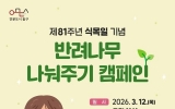 나주 GJ저널망치2026. 03.11[GJ저널 망치] 광주 동구는 제81회 식목일을 앞두고 주민들이 직접 나무를 가꾸며 생활 속 환경보호를 실천할 수 있도록 오는 12일 5·18민주광장에서 ‘반려나무 나눠주기’ 캠페인을 개최한다고 밝혔다. 동구는 이날 오전 11시부터 서향나무(천리향) 1,000주를 1인 1그루씩 선착순으로 무료 분양한다. 구는 이번 행사를 통해 ‘1인 1나무 가꾸기’를 적극 홍보함으로써, 일상 속에서 기후위기 극복을 실천하고 녹색도시 조성에 기여할 것으로 기대하고 있다. 주민들이 가정과 생활공간에서 직접 나무를 돌보며 미세먼지 저감과 도시 환경...