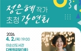 담양 GJ저널망치2026. 03.18[GJ저널 망치] 여수시는 오는 4월 2일 오후 7시 이순신도서관 다목적강당에서 정은혜 작가를 초청해 강연회를 개최한다고 밝혔다. 정은혜 작가는 「싸움의 기술: 모든 싸움은 사랑 이야기다」, 「변화를 위한 그림일기」 등을 집필한 미국 공인 미술치료사이자 생태예술가로 환경과 예술을 결합한 창작 활동을 국내외에서 활발하게 이어오고 있다. 이번 강연에서는 ‘너의 좋은 날을 살아봐’를 주제로 마음을 돌보는 창조적인 방법을 이야기하고, 단편 다큐멘터리 ‘플라스틱 만다라’와 올해 인도와 호주에서 전시 예정인 ‘산호뜨개’ 작품도 함께...