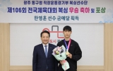 남구 GJ저널망치2025. 10.29[GJ저널 망치] 광주 동구(청장 임택)는 직장운동경기부 동구복싱단(감독 신명훈) 소속 한영훈 선수가 최근 부산 벡스코에서 열린 ‘제106회 전국체육대회’에 출전해 금메달을 수상했다고 밝혔다. 동구복싱단의 간판선수인 한영훈 선수는 이번 대회 64㎏급에 출전해 뛰어난 기량으로 최종 1위에 오르며 금메달을 목에 걸었다. 한영훈 선수는 제103회부터 105회까지 전국체육대회에서 연속 우승을 차지한 데 이어 이번 제106회 대회에서도 금메달을 획득하며 4연속 빛나는 성과를 거뒀다. 한 선수는 굵직한 대회에서 여러 차례 입상하...