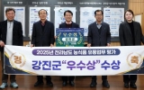 광양 GJ저널망치2025. 12.26[GJ저널 망치] 강진군이 최근 전라남도 주관 ‘2025년 농식품 유통업무 평가’에서 우수상을 수상하며 농식품 유통정책의 선도 지자체로 주목받았다. 이번 평가는 ▲농특산물 유통 활성화 ▲농식품 산업육성 ▲쌀 판매실적 및 고품질 브랜드쌀 육성 ▲유통분야 가·감점 등 총 5개 분야에 걸쳐 전남도 내 21개 시군을 대상으로 실시됐다. 강진군은 특히 ‘쌀 판매실적 및 고품질 브랜드쌀 육성’분야에서 우수한 성과를 인정받았다. 강진군은 전남 10대 브랜드쌀에 19년 연속 선정된 ‘강진쌀’의 명성을 이어가는 한편, 기능성 쌀 ‘미호...