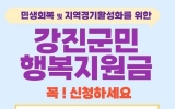 [GJ저널 망치] 강진군이 어려운 재정 가운데에서도 민생경제 회복을 위한 강진군민행복지원금을 지급한다. 고물가 고금리 등 경기침체 장기화로 어려움을 겪는 군민을 돕고 지역 경기를 활성화하기 위해 지원되는 이번 민생지원금은 순수 군비로 지급한다. 군은 이를 위해 당초 1회 추경 시 관련 예산 64억원을 편성해 놓았다. 그러나 지난 6월 새 정부가 들어서면서 정부의 민생경제회복을 위한 소비쿠폰이 두 차례에 걸쳐 지급됨에 따라 군 지원금의 지급 시기를 늦춰 정부 2차 지급 후인 11월에 지급하기로 결정했었다. 강진군 군민행복...