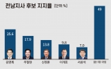 전라남도 GJ저널망치2025. 11.13내년 6월 지방선거를 앞두고 김영록 전남도지사가 여전히 선두를 달리고 있지만, 도전자들의 추격이 거세지면서 더불어민주당 경선 구도가 흔들리고 있다. 김 지사는 최근 OpenAI-SK 데이터센터와 2조 5,000억 원 규모 국가 AI컴퓨팅센터를 유치하는 성과를 냈지만, 6개월 전 32%에서 현재 25%대로 하락했다. 반면 주철현 전 민주당 전남도당위원장과 신정훈 국회 행정안전위원장은 같은 기간 각각 9%에서 17.9%, 6%에서 13.8%로 상승했다. 11월 여론조사…“김영록 선두 유지하나 격차 좁혀져” 프레시안 광주전...