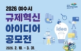광산구 GJ저널망치2026. 02.11[GJ저널 망치] 여수시는 10일부터 3월 31일까지 법령이나 조례 등에 과도한 규제로 시민의 일상생활에 불편을 주거나 기업 경영활동에 걸림돌이 되는 불합리한 사항을 발굴·개선하기 위해 “2026년 여수시 규제혁신 아이디어 공모전”을 실시한다. 공모 분야는 ▲시민안전·복지향상 ▲생활불편 ▲취업·일자리 ▲기업활동 ▲신산업 규제 등이며 규제 개선을 위한 제안은 전 국민 누구나 참여할 수 있다. 참여를 희망하는 경우 여수시 누리집 고시공고란에 게시된 제안서를 작성해 방문 또는 우편, 담당자 이메일로 제출하면 된다. 단, 단순 ...