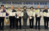 전라남도 GJ저널망치2026. 01.13[GJ저널 망치] 전라남도는 23일 목포 샹그리아호텔에서 ‘2025 규제합리화 우수 시군 시상식’을 열고 한 해 규제 개선에 기여한 시군의 성과를 공유했다. 행사는 ▲우수 시군 시상 ▲규제개선 사례 발표 ▲인문 교양 특강 순으로 진행됐다. 우수 시군 시상에서는 광양시가 규제로 중단된 지역 사업을 발굴하고 해결한 성과를 인정받아 최우수상과 상금 400만 원을 받았다. 고흥군과 신안군은 중앙 규제 신규 발굴과 현장 토론회를 통한 개선 노력을 높이 평가받아 우수상과 상금 300만 원을 수상했다. 또 기업의 규제샌드박스 신...
